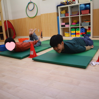 飛行機のポーズを真似して、背中や体幹を鍛える運動にチャレンジしました!