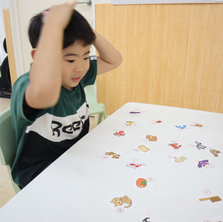 次の文字を探して、カードに描いてあるものの名前を言いながら、